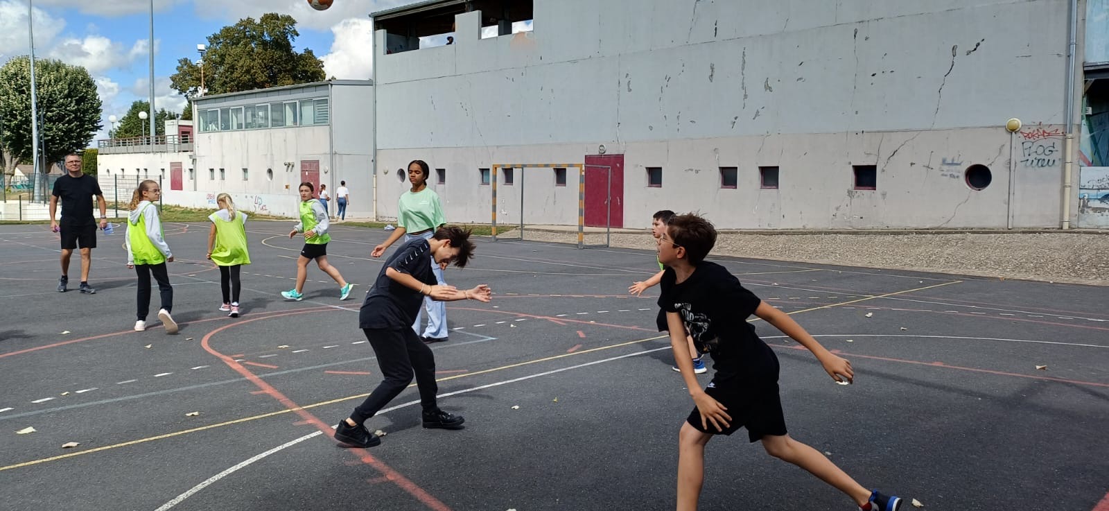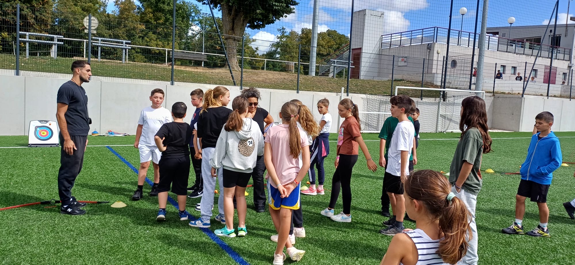 Comme chaque année, une après-midi sportive est organisée le premier jour, entre les élèves de 6èmes et de 5èmes. Basketball, handball, foot ball, tir à l'arc et relais, il y en a pour tous les goûts.